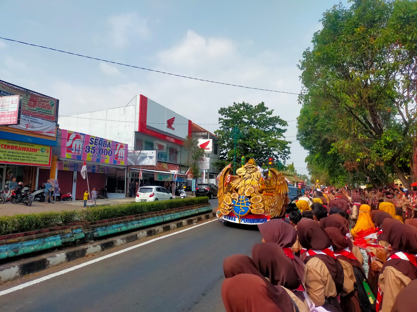 SMP Negeri 2 Kajen menyambut Karnaval Mobil Hias yang diselanggarakan oleh Pemerintah Kabupaten Pekalongan dalam rangka Hari jadi Kabupaten Pekalongan Yang ke-401.